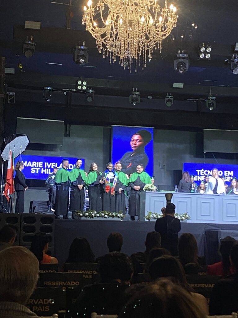 Nan pakou etid li a, li te sèl grenn Ayisyen. Li di , Pafwa sa konn rann li tris. Paske , lè gen devwa an gwoup, se pa t toujou fasil pou l te jwenn yon gwoup pou l te rantre. Se sa k fè , selon sa li di, li te santi l vreman fyè pou l te mete etòf Drapo Ayiti a sou li pandan gwo evènman sa a.
